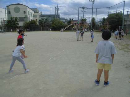 今回の中間休みは,1・2年生のワンツーグループで遊びました。