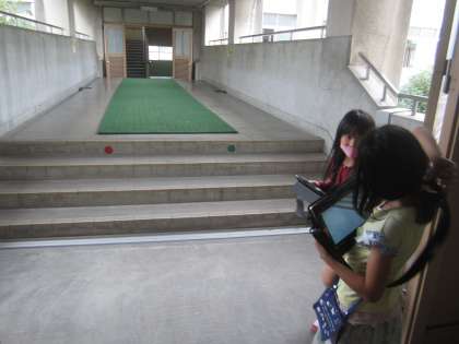 車のヘッドライトやトイレの鏡を目に見立てていて,