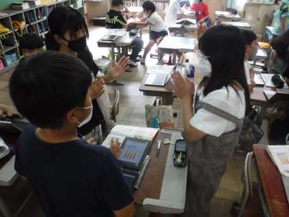 今日は1組での授業で,ジグソー学習という学習の方法で取り組みました。