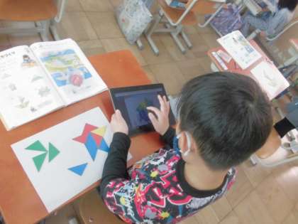 たしざん(2)が終わり,かたちづくりの学習に取り組んでいます。