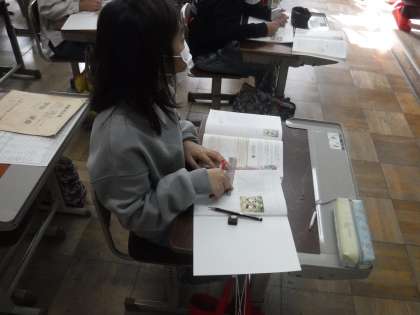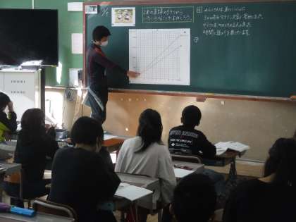 算数では,比例のグラフから調べたい内容を考える授業を行いました。