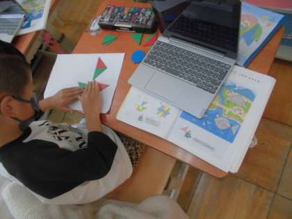 子ども達は,何枚使うのか,よく考えながらかたちづくりの