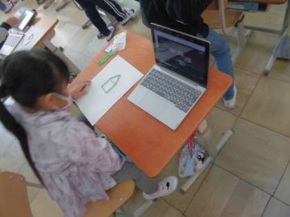 子ども達は,お手本の絵を見ながら,ぼうのかたちをしっかりと読取り,