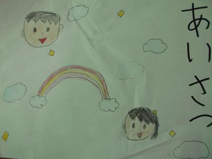 周りには楽しそうな絵を描いて,作品を仕上げました。