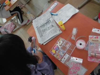 あきのものだけで,ロボットを作ったりや絵を描いたりする子もいました。