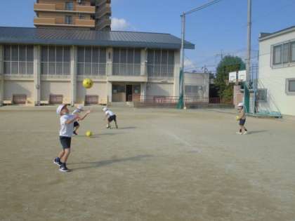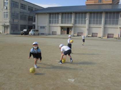 パスゲームの学習に入る前に,ボールとなかよくなる学習をしました。