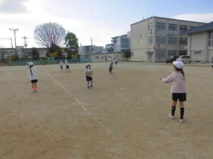 1年 体育 パスゲームの前に