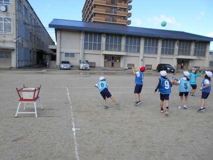 体育では,パスゲームの学習を始めました。