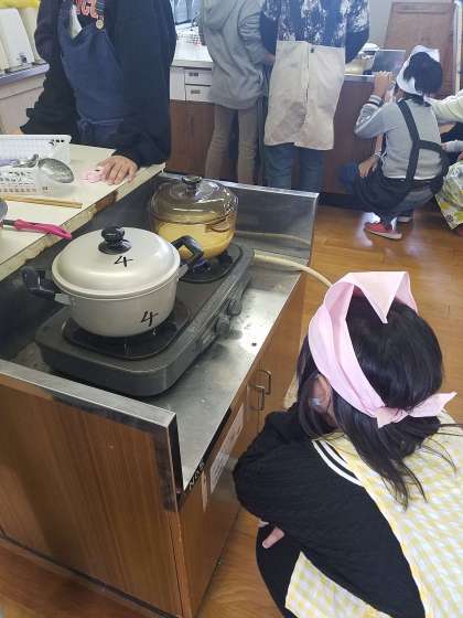 調理実習でご飯とみそ汁を作りました。