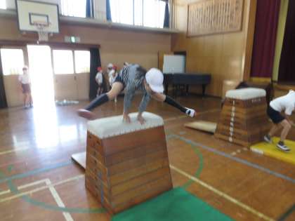体育の学習で,とび箱を頑張っています。