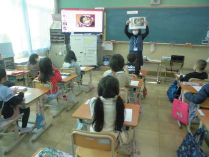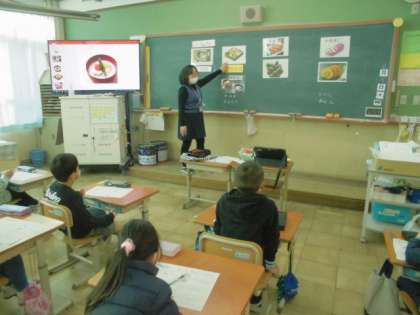 学活の学習では,栄養教諭の先生にお正月のお話をしてもらいました。