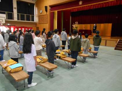 始業式の前に,新しい校長先生をはじめ教職員との出会いの式がありました。子ども達はどんな先生なのだろうかとしっかりとお話を聞いていました。