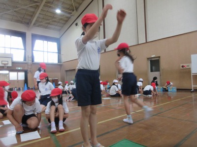 腕をしっかり振りながら,力いっぱい跳ぶことができました。