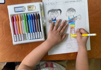 楽しかったことをワークシートにかきました。