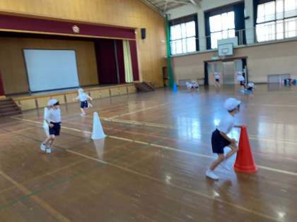1年生では,折り返しリレーに挑戦します。