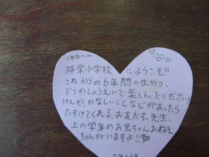 1年生へのメッセージカードを学校全体で取り組んでいます。