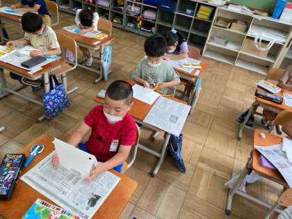 はさみで切ったり,色を塗ったりして作品を作りました。