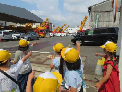 しばらく歩くと,日本サルベージサービスという会社を見つけました。大きなクレーン車がたくさんありました。