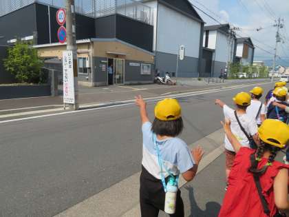 祥栄交番では,おまわりさんが出てきて手を振ってくださいました。