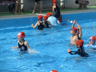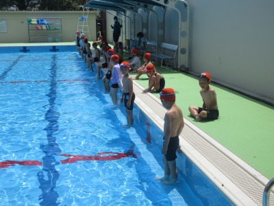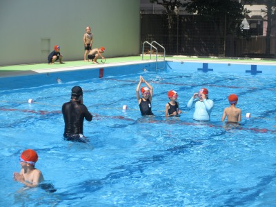 今日は,基本の泳ぎを習得するために,浮いたり沈んだり,息づきをしたりしました。楽しみながら,水泳の基本を学びました。