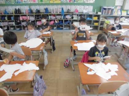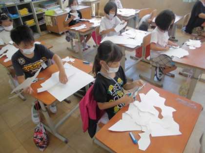 色々な方向に画用紙を動かし,色々なものに見立てていました。