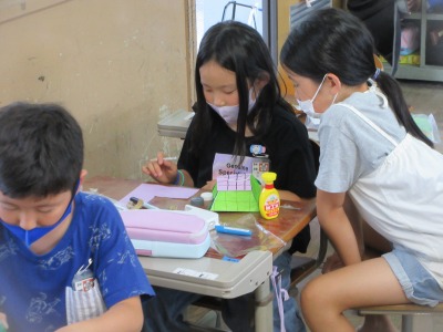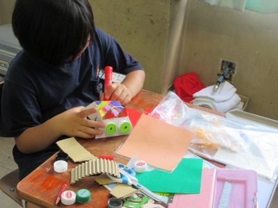 色をぬったり,形を変えたりして楽しみながら作っています。