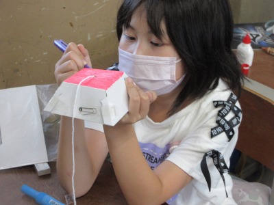 図工では,ゴムの力を利用して動くものを作っています。