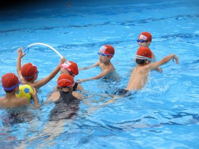 子どもたちは,自分の泳ぎを習得するために,