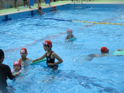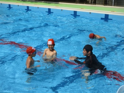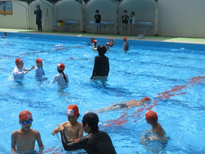 教務主任の先生にも参加してもらい,泳ぎを教えてもらいました。