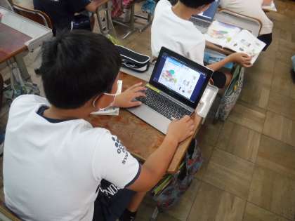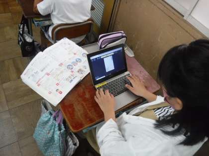 家庭科の学習では、自分でインターネットや動画を視聴し、新聞を作成しています。