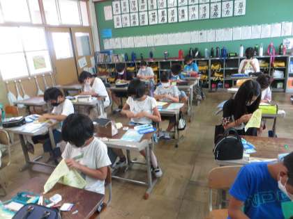 家庭科の学習で、「なみぬい」をしました。