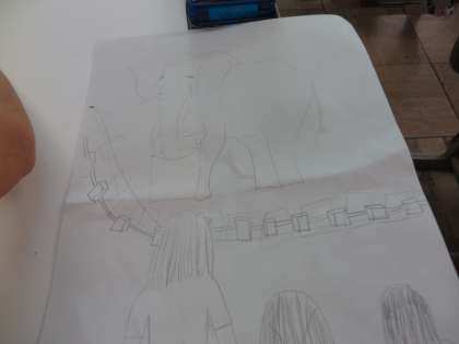 下絵から、イメージした場面を詳しく描きました。