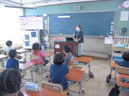 栄養教諭の先生に給食に出るさかなについて,教えてもらいました。