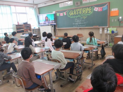 教室では,動画で校長先生と6年生のはじめの言葉を見ました。