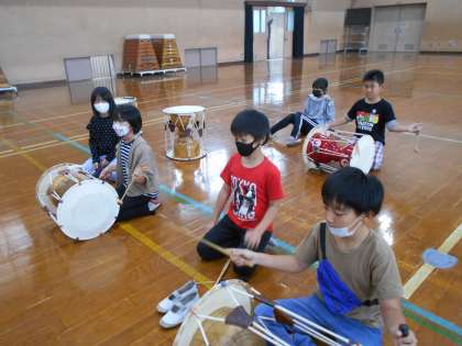 講師の先生を迎えて,コリアの楽器を楽しみました。4つの打楽器は,それぞれ自然を表しているというお話を聞き,とても興味深く楽器をたたいてみました。チャンゴは,2人1組になって,色々なリズムにチャレンジしました。朝鮮半島の打楽器に触れる体験を通して,コリアの文化に興味をもてた時間となりました。