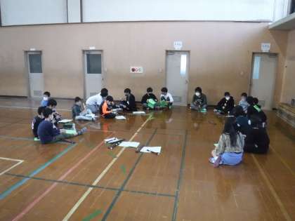 6年 体育館でそろえました!