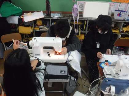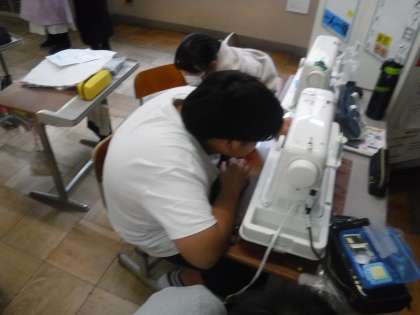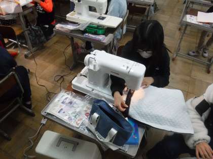 家庭科では、トートバック作りに取り組んでいます。