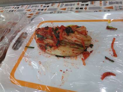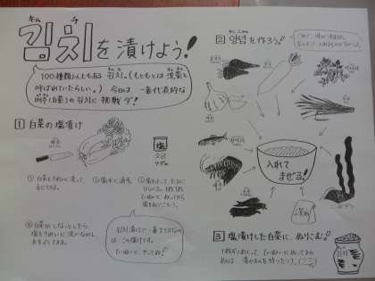 どんな食べ物があるのかや、キムチの作り方を教わりました。