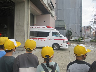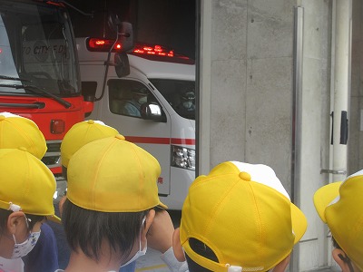 訓練ではなく,救急車が実際に出動している様子を見ることができ,緊張感がとてもありました。子どもたちは真剣にその様子を見ていました。