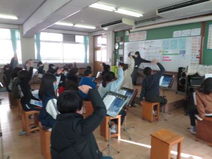 音楽の学習で、曲の中のフォルテとピアノについて学びました。