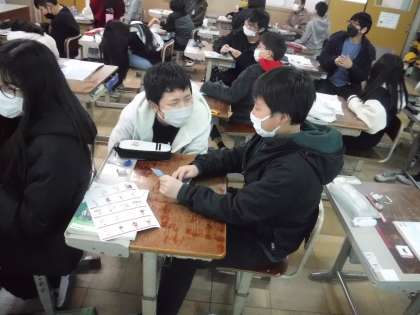 教科書についているカードを順番に引きながら、質問したり、答えたりして基本表現の練習をしました。