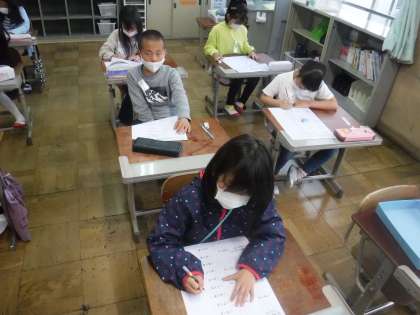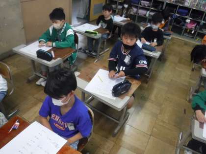 算数の学習で、2年生の復習テストをしました。
