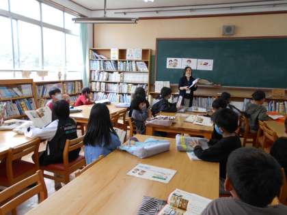 4月にオリエンテーションをしていただき,学校図書館を利用しての学習が始まりました。利用の仕方を確認した後,学校司書の先生に「分類しりとり」というゲームを教えていただきました。