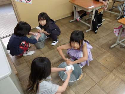 ぞうきんの絞り方・ほうきのはき方が少しずつ上手になりました。