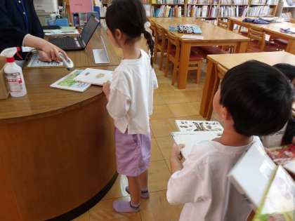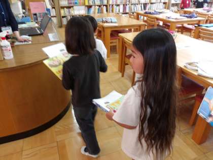 学校図書館へ行って、本を借りました。