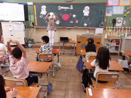 4時間目に栄養教諭の先生から、ごはんの食べ方について教えてもらいました。