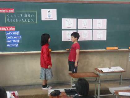 外国語の学習では、ジェレミー先生とやり取りをし、ジェスチャーの大切さについて考えました。