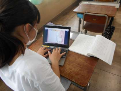 国語の学習でもロイロノート使っています。自分の意見と友だちの意見を見比べて、考えを深めることができていました。