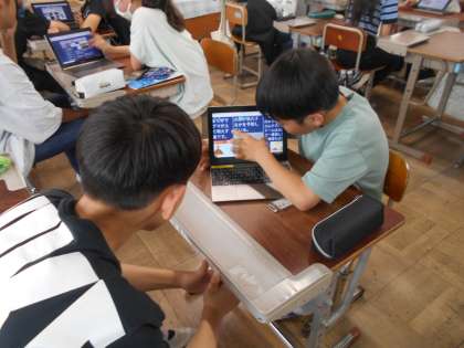 総合的な学習の時間で「自然災害」ついて調べ学習をしました。画面を指で示したり,画面を拡大したりしながら、相手にわかりやすくをキーワードにペアトークができました。