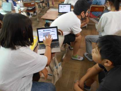 総合的な学習の時間で「自然災害」について調べています。今回は,祥栄小学校の危険な場所について話をしました。GIGA端末で写真を撮り,ロイロノートにまとめて発表しました。